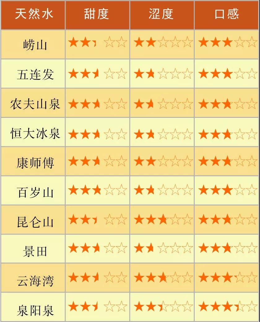 讀者根據品嘗到的瓶裝水,從甜度、澀度、口感三項進行打分。